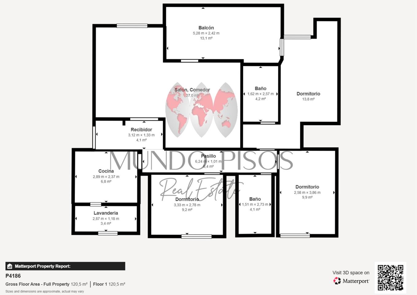 According to a private measurement, it measures approximately 86 m² excluding the terrace on the 10 m² floor with views of the Paseo Marítimo.