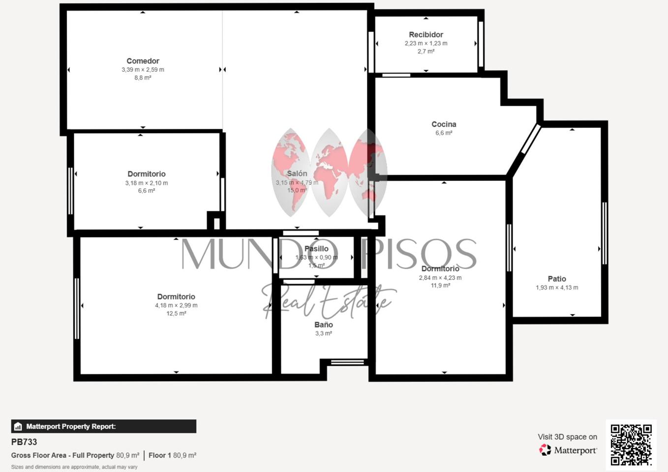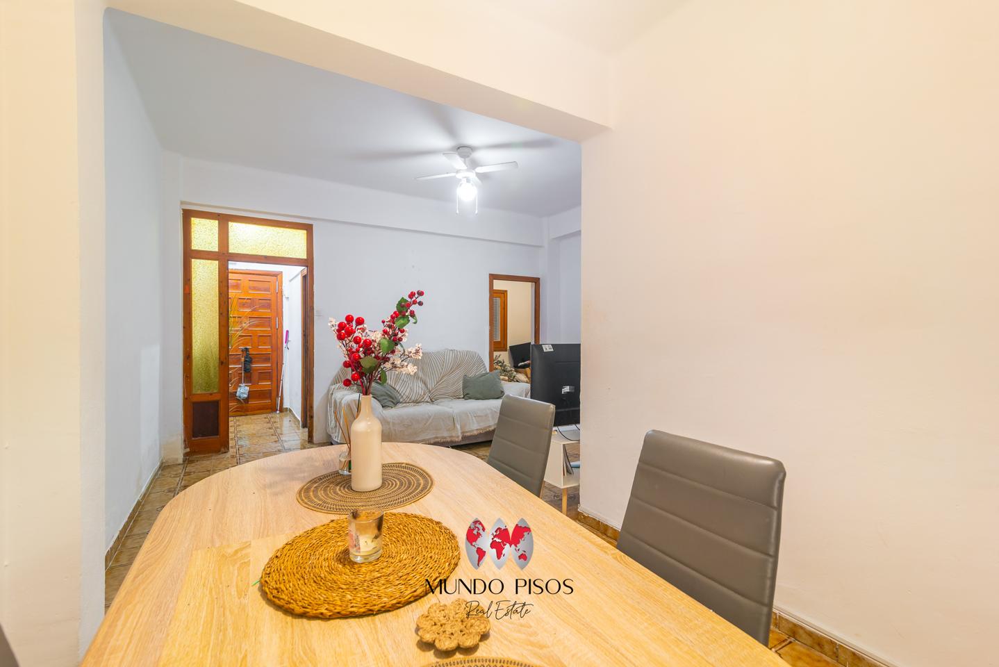 It has a built surface area of 80 m² of living space according to the cadastre (63.48 m², plus a courtyard of approximately 12 m², registered), distributed into a living-dining room, independent kitchen, one bathroom, three bedrooms, two of which are double, and an independent laundry room, as well as a patio with an outdoor porch, a highly valued space.