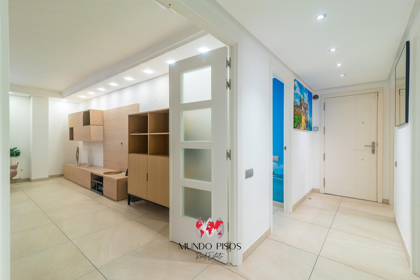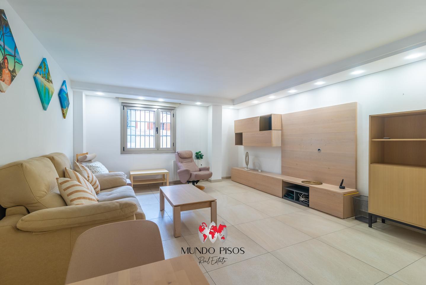 Se trata de una preciosa planta baja de 100 m² construidos catastrales de vivienda (96,75 m2 registrales de despacho/oficina), completamente reformada y lista para entrar a vivir. La vivienda se distribuye en un salón comedor, una cocina individual totalmente equipada con acceso a coladuría y a un pequeño patio trasero, tres dormitorios, dos de ellos dobles y uno individual (actualmente acondicionado como vestidor) y dos baños completos, uno de ellos en suite.