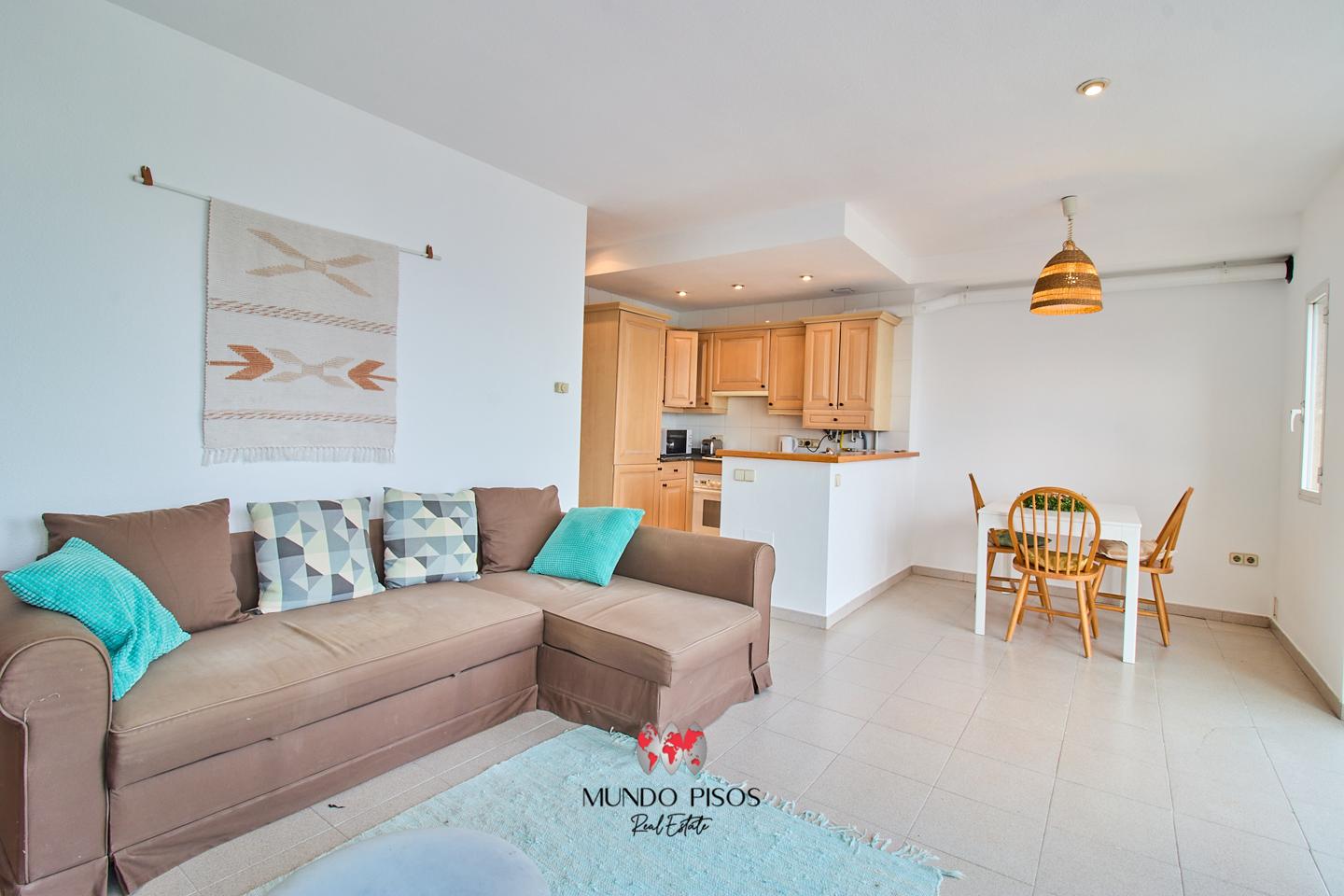 Este piso se encuentra en una quinta planta con ascensor e idónea orientación sur, y cuenta con una superficie de 72,09 m2 construidos registrales, que se distribuyen en un luminoso salón-comedor con vistas directas al mar, con la cocina con barra integrada al estilo americano, dos dormitorios, de los cuales uno de ellos es doble y otro mediano, con armarios empotrados y un baño completo.