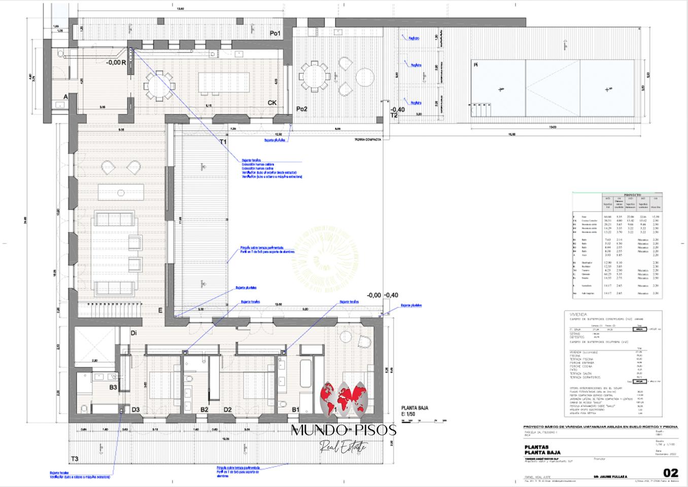 * Plano y renders del proyecto proporcionados por el propietario.